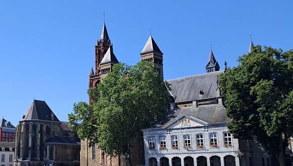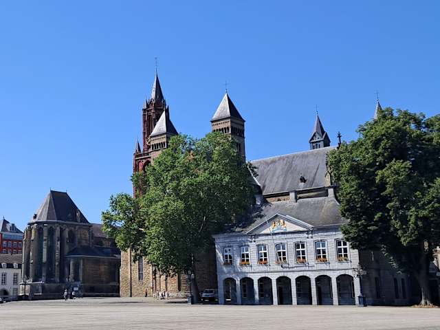 Die Hoofdwacht ist ein ehemaliges militärisches Wachgebäude, das sich unmittelbar am Vrijthof befindet. Hinter dem schönen Gebäude der Hoofdwacht sieht man die Servatiusbasilika (Sint Servaas Basiliek) und die Johanneskirche (Sint-Janskerk).