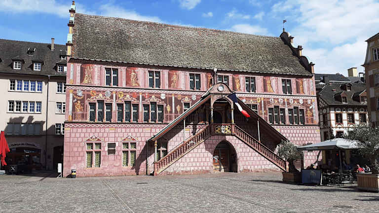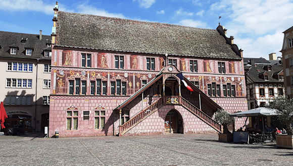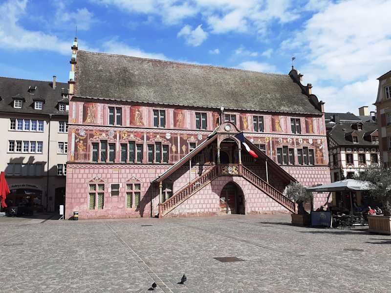 Das auffällig bemalte Gebäude des ehemaligen Rathauses stammt aus dem Jahr 1552 und ist ein Paradebeispiel für die Renaissancearchitektur im Elsass. Die rosafarbene Fassade mit den aufwendigen Malereien lässt das Gebäude wie ein Schmuckkästchen wirken. Sicher DAS Highlight beim Stadtrundgang.