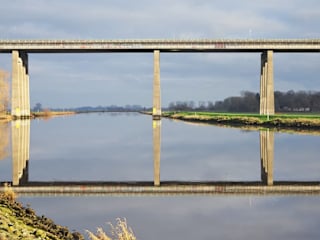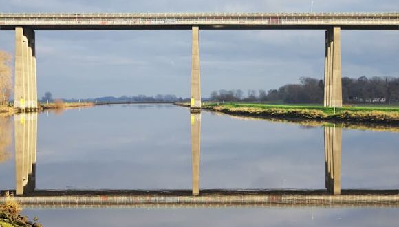 In Oldenburg führen mehrere Brücken über den Fluss Hunte, aber die im Osten der Stadt liegende Autobahnbrücke der A29 ist einen Reisetipp wert und dabei ganz sicher nichts für Menschen mit Höhenangst. Nicht nur Kraftfahrzeuge nutzen die knapp 30 Meter hohe Brücke, sondern auch Fußgänger, für die es in der „Basement-Etage“ ebenfalls einen Weg gibt. Gesichert durch Gitter überquert man das gigantische Bauwerk und erlebt dabei beunruhigende Schwingungen, wenn tonnenschwere LKW in der oberen Ebene die gesamte Stahlbeton-Konstruktion erschüttern. Direkt über der Hunte hat man einen unverstellten Blick auf die Silhouette der Universitätsstadt und vom Oldenburger Hafen führt ein malerischer Weg am Fluss zwischen weidenden Schafen direkt zu dem spektakulären Aussichtspunkt, den man nach etwa 3,5 Kilometer Wegstrecke erreicht.