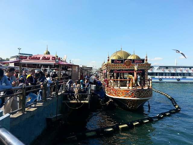 Direkt am Fähranleger Eminönü gelegen,befindet sich der Fisch Imbiss in einem bunten Boot direkt am Wasser. Hier kann man das für Istanbul bekannte „ Balik Ekmek „ essen. So zu sagen, frisch gefangen und zu bereitet. Eine Art gegrillte Makrele im Brötchen mit Salat,Zitrone und Tomate.Einfach lecker --- für 2,50 Euro ein toller Imbiss für zwischendurch. Das Boot selber spiegelt schon eine gewisse Atmosphäre dar. Man kann den Fisch „ to go „ kaufen oder man setzt sich auf kleine Fässer vor den Imbiss, die Fässer stellen Tisch und Stühle dar .Darf man sich nicht entgehen lassen.