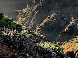 Ende November habe ich an 3 verschiedenen Inselrundfahrten teilgenommen. Bei dieser Tour ging es in einem Konvoi von 4 Minivans in die Berge - teilweise an Orte, wo die Reisebusse nicht hinkommen - teilweise über Strassen, die auf der Karte nicht eingezeichnet sind … manchmal ziemlich steil am Abgrund. Der Roque Nublo hat sich nur auf dieser Tour gezeigt (bei den anderen Ausflügen hat er sich hinter Wolken versteckt). Highlight war die Besichtigung einer Höhlenkapelle und einer Höhlenwohnung (kein Museum), die nur für angemeldete Besucher geöffnet werden). Eine Öko-Kräuterfarm im Gebiet von Tejeda stand ebenfalls am Programm, Mittagessen in einem Höhlenrestaurant war inclusive. Besonders gefallen hat mir die Honda Schlucht mit dem Dorf Moya. Reiseleiter Heiko (auch während der Fahrt mit allen Fahrzeugen verbunden) informierte umfassend und interessant, Kameramann “Otto“ filmte während der Tour, wer wollte bekam die Tour auf einem USB Stick ins Hotel geliefert (beinhaltet noch viele zusätzliche Infos und schöne Bilder von der Insel).