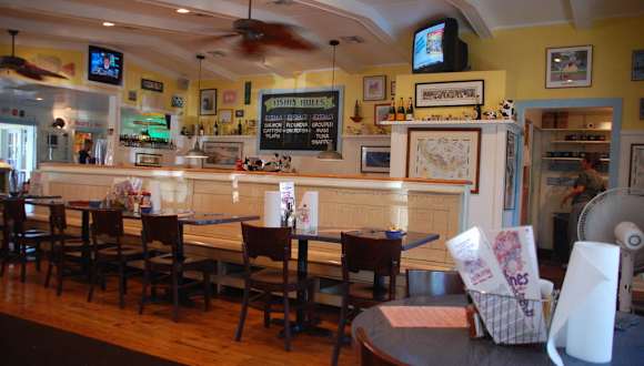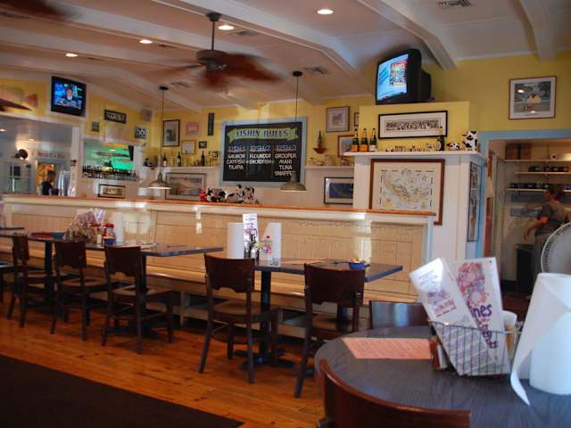 In diesem urigen und gemütlich eingerichtetem Familienrestaurant kann man in netter Atmosphäre preiswert und gut essen. Auch Aussenplätze sind vorhanden und es gibt typisch amerikanisch freundliche Bedienung. Zur Unterhaltung der Kinder und auch Erwachsenen gibt es verschiedene Fernseher und interessante Dekorationen. Fisch in verschiedensten Zubereitungsvarianten und natürlich ein reichhaltiges Angebot von Burgern und Steaks.