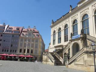 Kleiner Platz mit Museum, welcher nahtlos zur Neumarkt übergeht Fotografiert aus allen Seiten und die Frauenkirche um die Ecke