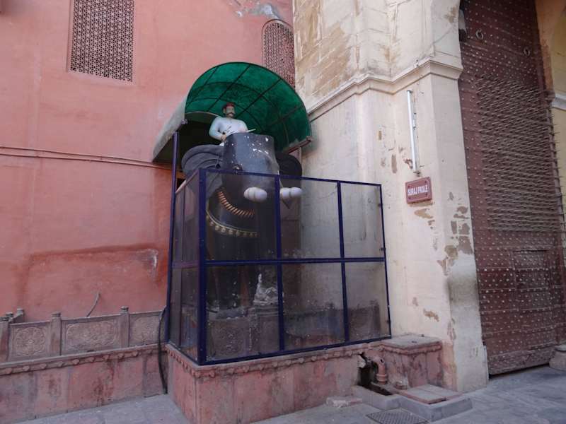 Das Junagarh Fort ist wohl der urtümlichste der großen Rajasthan-Paläste. Er gewährt heute noch Einblick in das Leben der Rathore-Rajputen, die erst in den 50er Jahren des 20. Jahrhunderts ihre Macht und einen Großteil ihres unermesslichen Reichtums verloren haben. Im Jahre 1587 begann der Rajputen-König Raja Rai Singh, einflußreicher Heerführer des Mogulkaisers Akbar, mit dem Bau dieser ebenerdigen Festung, die durch einen Wassergraben und eine hohe Mauer geschützt ist. An manchen Stellen hat die fast 1 km lange Umfassungsmauer eine Breite von 9 m und eine Hohe von 20 m. Diesen beeindruckenden Schutzvorkehrungen ist es zu verdanken, dass das Fort nie von Feinden eingenommen werden konnte und bis heute sehr gut erhalten ist. Nach und nach errichteten die Nachfolger von Rai Singh etliche Bauwerke innerhalb der Festungsmauern, so dass der Besucher heute mehr als 30 Paläste, Tempel und Pavillions bewundern kann. Ein großer Teil der Paläste kann besichtigt werden. Ältester Bestandteil der Palastanlage ist das Eingangstor Suraj Pol, durch das man auch heute noch den Komplex betritt. Es ist ein massiver Bau ohne Schnörkel, dessen glatte Fassade nur durch zwei Balkone und eine sie verbindende Galerie aufgelockert wird, von der aus Musikanten die Abreise oder die Ankunft des Rajas verkündeten. Im Gegensatz zu den übrigen Bauten ist es aus gelbem Marmor gefertigt, der aus dem 300 km entfernten Jaisalmer herangeschafft wurde. Der Legende zufolge soll Rai Singh den Baustoff seiner aus Jaisalmer stammenden Frau zuliebe gewählt haben, wahrscheinlich aber hatte man den langen Transportweg auf sich genommen, weil der später verwendete rötliche Sandstein noch nicht entdeckt worden war. Zwei Elefanten flankieren den Durchgang zum ersten großen Innenhof . Dabei ist es ratsam, sich von im Fort angestellten Führern die vielen Räume zeigen zu lassen, da man sich sonst leicht verirren kann. Besonders beeindruckend sind die Ganga Niwas Durbar Hall mit den fein gemeißelten Wänden und Dächern, der mit Spiegeln verzierte Phul Mahal (Blumensaal) und der mit Jagdszenen bemalte Chandra Mahal (Mondsaal). Die Innenausstattung der Räume zeigt deutlich den Einfluß der mogulischen Architektur. Eines der Glanzstücke des Palastes ist der Saal der Privataudienzen, Anup Mahal, der im 17. Jh. unter Anup Singh entstand und seine phantastische aus Spiegeln, Einlegearbeiten und Malereien in Gold bestehende Dekoration unter Raja Surat erhielt. Für die Innenausstattung griffen die Herrscher von Bikaner bevorzugt auf fremde Künstler zurück. Für Lackarbeiten auf Holz holte man Spezialisten aus Multan (heutiges Pakistan), für Einlegearbeiten Künstler aus Amber bei Jaipur. Wie in etlichen rajputischen Palästen trat auch in Bikaner ab dem 18. Jh. der Mogulstil deutlicher in Erscheinung, da mit dem Niedergang dieser Dynastie viele arbeitslos gewordene Kunsthandwerker an die Fürstenhöfe abwanderten. Im Blumenpalast kann man ein kleines Bett des Rao Bika (1465-1504) bewundern. Der Herrscher ließ seine Beine immer über den Rand hinausragen, um selbst dann noch, wenn er ans Bett gefesselt werden sollte, aufspringen und sich gegen seine Widersacher verteidigen zu können. Ganz unbegründet war dieser Spleen nicht, hatte doch eine Konkubine seinen Großvater mit seinem Turban ans Bett gebunden und so den Häschern preisgegeben. Heute ist hier das Museum untergebracht, das nach alter rajputischer Tradition voller Stolz die übliche Waffensammlung präsentiert, darunter auch eine Kanone, die auf ein Kamel montiert werden konnte, und sogar das wie eine Reliquie ausgestellte Flugzeugwrack aus dem Ersten Weltkrieg.