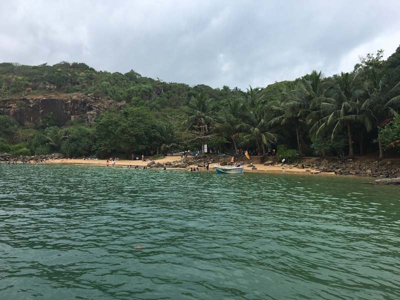 Wir sind vom Long Beach Hotel mit dem Bus nach Unawatuna gefahren und von dort aus weiter mit dem Tuk Tuk (ca. 3km). Das Tuk Tuk hatte uns oben auf dem Berg raus gelassen, so konnten wir uns noch die schöne Peace Pagoda anschauen. Dann ging es bergab in Richtung Jungle Beach. Man läuft ca 10min zum Beach. Wir waren relativ früh dort und hatten dann dort ne gute Wahl für ein schönes Plätzchen. Ab 12 Uhr ist es sehr voll dort, da die Bucht nicht sehr groß ist. Die Wellen sind nicht so hoch wie am Koggala Beach. Wir fanden es richtig toll dort. Die Liegen die dort stehen, braucht man auch nicht zu bezahlen. Im Anschluß waren wir noch schön Mittag essen, in dem kleinen Restaurant am Jungle Beach. Die Küche ist sehr gut und der Ausblick beim essen, ein Traum. Empfehlen können wir einen frischen Mango Saft und das Club Sandwich. Genügend Tuk Tuk warten oben am Berg auf die Touris.