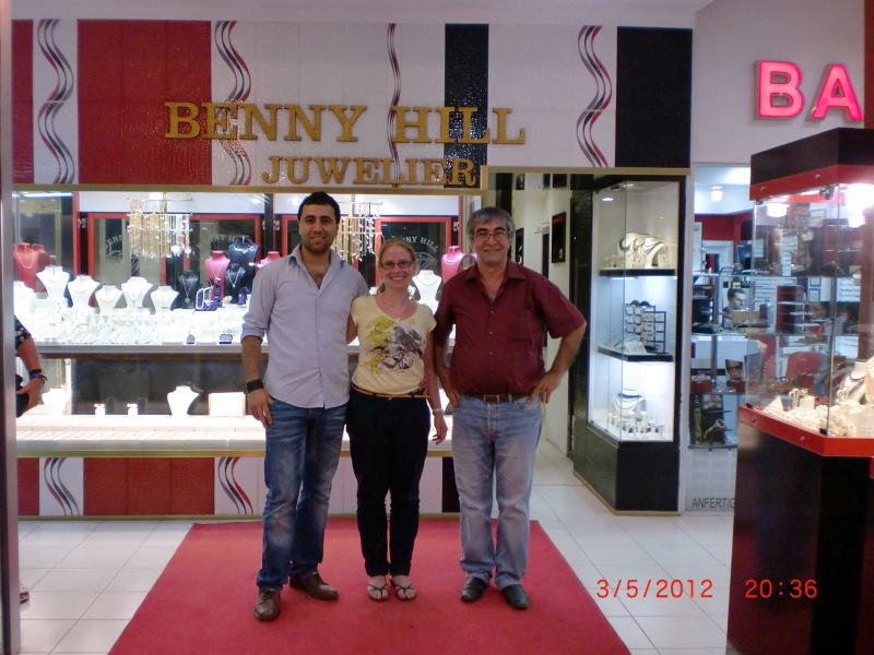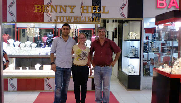 Wir sind seit Sept. 2002 Kunden beim "Benny Hill Juwelie" in Kumköy. Wir haben Freunde gefunden. Wir haben ein sehr herzliches Verhältnis. Wir müssen nicht jedes Jahr etwas kaufen, tun es aber meistens.