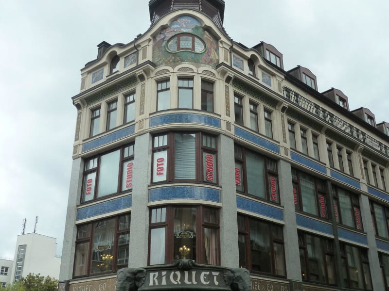 Am Eingang zum Kaffeehaus Riquet wird man von zwei Elefantenköpfen begrüßt. Das Kaffehaus befindet sich im Erdgeschoß des 1908/09 im Auftrag der Firma Riquet & Co vom Architekten Paul Lange errichteten Geschäftshauses und gehörte Anfang des 20. Jahrhunderts mit zu den modernsten und zweifellos originellsten Neubauten Leipzigs. Die bis ins Jahr 1745 zurückreichende Handelstradition der Firma Riquet mit Ostasien und dem Orient setzte der Architekt auf einfallsreiche Weise im und am Bauwerk um. Das doppelstöckig geschweifte Dachtürmchen entlehnte er der klassischen chinesischen Baukunst. Brüstungen, Pfeiler, Hauptgesims und Rundgiebel sind mit wunderschönen farbigen Mosaiken in Jugendstilmanier geschmückt. Zwei, die Eingangstür zum Cafehaus flankierende, kupfergetriebene Elefantenköpfe stellen das Markenzeichen der Firma Riquet dar. Nach der Restauration ist auch der denkmalgeschützte Innenraum des Eckladens in voller Schönheit wiedererstanden. In diesen Räumen wird heute das Kaffehaus Riquet betrieben, ein Café, dass sich der alten Tradition der Kaffeehäuser verpflichet hat. Es gibt diverse Kaffeesorten, reichlich Kuchen, Lerchen aber auch die Kleinigkeiten an herzhaften Gerichten. Die Bedienungen sind freundlich und schnell. Adresse: Kaffeehaus Riquet, Stadtcafé - Wiener Café, Schuhmachergäßchen 1, 04109 Leipzig, Tel. 0341/ 9 61 00 00. homepage: www.riquethaus.de