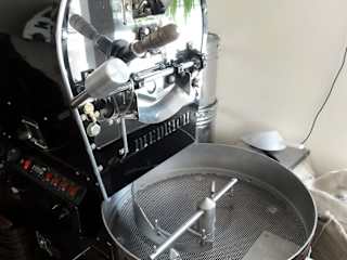 Kaffeegenuss neben der Rösttrommel