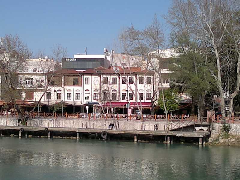 Habt ihr Lust auf Erdbeerkuchen mit Sahne?- Dann geht ins Kar-Pi Restaurant am Ufer des Manavgats. Diesen Tipp hatten wir bekommen und hatten Appetit auf Erdbeerkuchen. Wenn man an der gelben Brücke beim Sportgeschäft die Treppen runter steigt, findet man nach vielleicht 100 Metern das Restaurant über dem Karadeniz Side zu lesen ist. Es liegt wunderschön am Fluss. Wir probierten den Erdbeerkuchen mit frischem Filterkaffee für 3 Euro pro Person. Es hat uns sehr gut geschmeckt. Wir erfuhren, dass sich in diesem Restaurant insbesondere an den Markttagen Langzeiturlauber treffen. Was ist das besondere an dieser Location?- Die Wirtin hat jahrelang in München gelebt, spricht sehr gut deutsch und serviert auf Wunsch der Gäste Hausmannskost, die insbesondere Langzeitler sehr schätzen. Die Gäste äußern ihre Wünsche und Saliha erfüllt sie. An einem unserer Besuchstage ließen sich die Gäste Rinderrouladen mit Rotkraut und Salzkartoffeln schmecken. Als ich in die Nähe der Küche kam duftete das Rotkraut sehr gut. Wir blieben allerdings beim hausgemachten Erdbeerkuchen. Wenn ihr in Manavgat seid, schaut doch mal rein. Wir werden es beim nächsten Besuch in der Stadt auch wieder tun.