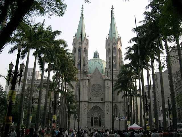 Die "Catedral Metropolitana Nossa Senhora Assuncao de São Paulo", auch als "Catedral de Sé" bekannt, befindet sich an der Praça da Sé im historischen Zentrum von São Paulo. Das Gotteshaus wurde zwischen 1913 und 1954 nach den Plänen des deutschen Architekten Maximilian Emil Hehl im neugotischen Stil anstelle einer abgerissenen barocken Kolonialkirche aus dem Jahr 1764 errichtet. Als Vorbild diente die Kathedrale Santa Maria del Fiore in Florenz. Trotz seiner neugotischen Architektur weist der Kirchenbau aber auch einige Renaissance-Elemente, wie z.B. die 65 Meter hohe Kuppel, auf. Die Hauptfassade wird von zwei fast 92 Meter hohen Glockentürmen, die erst 1967 fertiggestellt wurden, gesäumt. Im Inneren bietet die Kathedrale Platz für etwa 8.000 Gläubige. In der Krypta sind mehrere wichtige Persönlichkeiten der brasilianischen Geschichte begraben. Sehenswert sind die Buntglasfenster, die Mosaiken und Kunstwerke, der Hochaltar sowie die große Orgel im Inneren. Das Glockenspiel im Ostturm der Kathedrale ist mit 61 Glocken eines der größten von Brasilien. Homepage: http://www.arquisp.org.br/regiaose/paroquias/mosteiros-igrejas-historicas-oratorios-da-regiao-se/catedral-metropolitana-nossa-senhora-assuncao-e-sao-paulo-se
