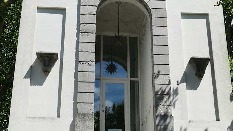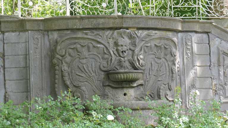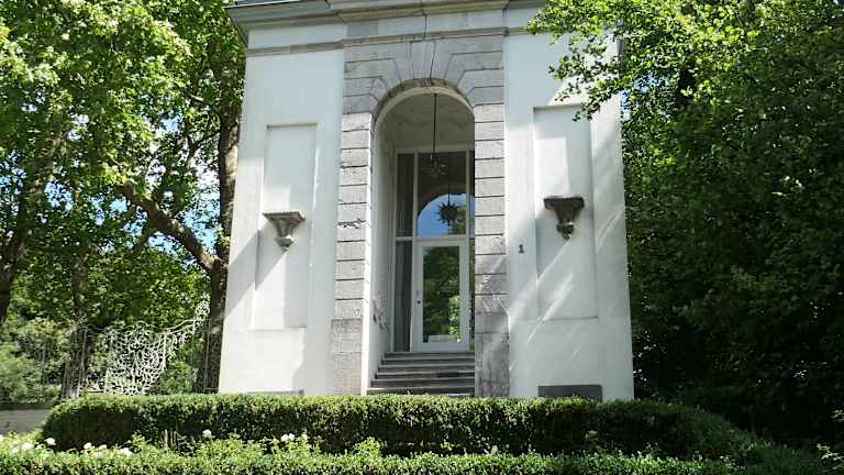 Der barocke Kerstenscher Pavillon (auch Gartenhaus Mantels genannt) auf dem Lousberg wurde von dem Aachener Baumeister Johann Joseph Couven für die reiche Aachener Patrizierfamilie Mantel geplant und errichtet. Es ist ein schönes Gartenhaus mit Freitreppen, kunstvollem Ziergeländer und Wandbrunnen. Dieser Pavillon befindet sich unterhalb von den Säulen der sogenannten „Aachener Akropolis“ die man bereits von hier durch das Gitter hindurch sehen kann.