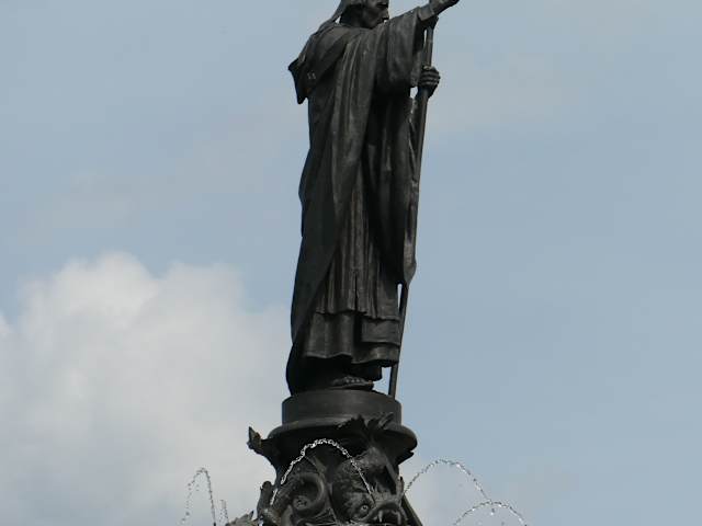 Vor dem Würzburger Bahnhof befindet sich der monumentale Kiliansbrunnen aus dem Jahr 1895.. Der Kiliansbrunnen war ein Geschenk von Prinzregent Luitpold an Würzburg, wo er 1821 geboren wurde. Oben auf der Säule, die sich aus den mehrstufigen Brunnenbecken erhebt, steht der Heilige Kilian, der als einer der drei Frankenapostel verehrt wird.. 1943 wollten die NAZIs die Bronzestatue von Kilian einschmelzen lassen, weshalb sie nach Hamburg verkauft werden musste. Zum Glück wurde diese Figur von Kilian doch nicht eingeschmolzen und wurde 1948 bei einem Hamburger Schrotthändler wieder gefunden. Die Stadt Würzburg kaufte die Bronzefigur zurück. Heute steht Kilian wieder oben auf der Brunnensäule und blickt auf Würzburg.