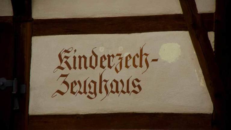 Im Jahre 1629 war dieses Haus die Schulzeche. Am Ende eines Schuljahres wurde dorthin der Ausflug gemacht und die Stadt sowie die Kirche bezahlte diesen Ausflug für die Schüler, daher der Name Zeche. Im Jahre 1897 wurde ein Festspiel hinzugefügt das über die Grenzen der Region hinausgetragen wurde und bis heute lebendig blieb. Das Haus selbst ist das beste Fachwerkhaus in Dinkelsbühl. . Adresse: Kinderzech-Zeughaus Bauhofstraße 43 91550 Dinkelsbühl