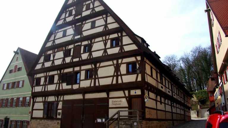 Das imposante Fachwerkgebäude wurde ursprünglich als städtischer Kornspeicher erbaut. Heute findet man hier das Museum für die Dinkelsbühler Kinderzeche (ggfs wegen Öffnungszeiten aufpassen).