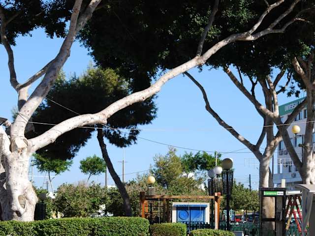 Mit der Buslinie 102 fuhren wir von unserem Crystal Springs Beach Hotel bis zur Endstation in Paralimni. Schräg gebenüber befand sich die St. Georgskirche, die wir zuerst besuchten. Dann betraten wir die kleine byzantinische St. Anna-Kirche. Die ältere St. Georg-Kirche lag zwischen diesen beiden. Sehr interessant waren die bunten Glasfenster in dem Verwaltungsgebäude der Diözöse CONSTANTINOS. Wie in Ayia Napa wurden wir auch hier auf einen Helden des Befreiungskampfes (1955 bis 1959) verwiesen: Major General Tasos Markou. Er wurde am 18. September 1938 in Paralimni geboren und kämpfte 1974 auch gegen die Türken. Seit dieser Zeit gilt er als vermisst.
