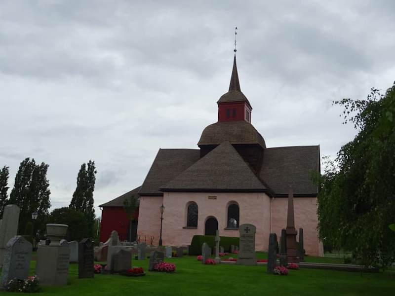 Die kleine Kirche liegt ein Stück außerhalb von Huskvarna. Von außen ziemlich normal und unscheinbar erwartet man dann nicht unbedingt das, was einen in der Kirche dann völlig überrascht. Die kleine Kirche von 1694 ist im Innenraum reich bemalt und dekoriert. Im Altarbereich schwebt ein Taufengel, der bei einer Taufe an das Taufbecken herab gelassen werden kann. Unser Guide hat dann zu unserer Überraschung eine in der Kirche befindliche Tonaufnahme in deutscher Sprache abspielen lassen (im Eingangsbereich auf linker Seite), mit der Teile der Bemalungen und die Historie der Kirche erläutert wurden. Eine Toilette befindet sich im Eingansbereich.