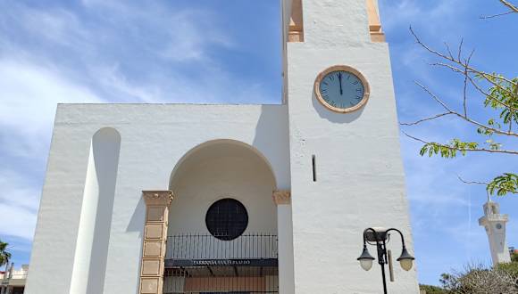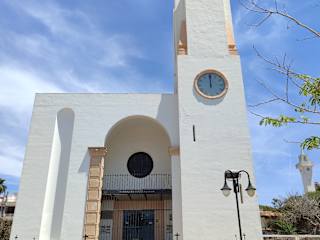 Die „Parroquia de San Fernando de Palma“ befindet sich gleich neben der kleinen Parkanlage „Parc Les Meravelles“, nur ca. 100 Meter von der Strandpromenade und vom Strand entfernt. Da die Außenseiten dieser Kirche völlig in weiß gehalten sind, wird sie auch als „Weiße Strandkirche“ bezeichnet.