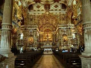 In der Nähe vom Praca da Sé (Pelourinho) befindet sich die Kirche Sao Francisco oder auch goldene Kirche genannt. Hierbei handelt es sich um ein Kloster. Eintritt kostet 5 Reias, wenn ich mich recht erinnere. In der Kirche befindet sich zunächst ein Innenhof, dessen Wänder gefließt sind. Die Fließen weisen Bilder mit Sprüchen zu verschiedenen kirchlichen Themen auf. Hier kann man ins philospohieren geraten. Im Inneren der Kirche betet sich dann ein ganz ungewöhnlicher Anblick. Die gesamte Kirche ist gold veziehrt. Wirklich die gesamte Decke und Wand besteht aus einem einzig goldenen "Teppich" mit Figuren, Masken, Bildern und Verschnörkelungen. Es ist wirklich wunderschön und mal eine ganz andere Kirche.