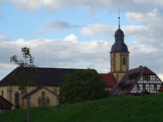 Bei dem Neubau der heutigen barocken Kirche im 18.Jahrhundert blieben einige Elemente der früher an dieser Stelle befindlichen Kapelle aus dem 15.Jahrhundert erhalten. Sehr schöne Lage am Neckar.