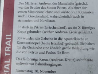 Nach unserem Mittagsessen im Zunerhof machten wir noch einen Spaziergang zur St.Andreas Kirche. Die Kirche befindet sich auf einer kleinen Anhöhe und ist nur etwa 5 Minuten vom Zunerhof entfernt. Auf einer Hinweistafel vor dem Zunerhof war u.a. folgendes über die Kirche zu lesen: Die St. Andreas Kirche wurde in der zweiten Hälfte des 14.Jahrhunderts erbaut, mit spitzbögigen Türen und Fenstern und einem Kreuzgewölbe im Schiff. Der Hochaltar mit Bild des Hl.Andreas (von Franz Unterhuber) stammt aus dem zweiten Viertel des 17.Jahrhunderts. Im Jahr 1995 wurde bei der Restaurierung ein Freskenzyklus mit dem Hl. Christophurus entdeckt und freigelegt, mit weiteren Darstellungen der Hl.Margarethe und der Heiligen Nikolaus, Stephanus und Laurentius und dem „Wahren Antlitz Christi“. Leider war die Kirche geschlossen. Der Märtyrer Andreas war der Bruder von Simon Petrus. Als einer der ersten Missionare lehrte und wirkte er in Kleinasien und in Griechenland, wahrscheinlich auch in Armenien und Kurdistan. Vom Vorplatz der Kirche aus, hatte man einen herrlichen Ausblick auf die umliegende Berglandschaft. Wie wir leider erst später erfuhren, konnte man sich den Schlüssel für die Besichtigung der Kirche beim Gasthof Zunerhof ausleihen.