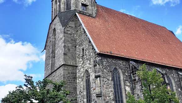 Der im 13. Jahrhundert begonnene Kirchenbau im Zentrum der Stadt zwischen imposanten Fachwerkbauten wurde 1584 vollendet. Wie Grabungen in den 1970er Jahren zeigten, gab es drei Vorgängerkirchen an gleicher Stelle. In der Kirche gibt es einen sehr schönen Hochaltar sowie einem mittelalterlichen Flügelaltar und ein ebenfalls schönes bronzenes Taufbecken.