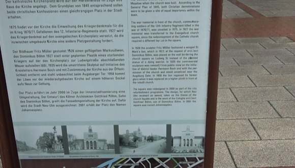 St. Johann Baptist wurde 1860 geweiht und ist im neoromanischem Stil erbaut. In Deutschland ist sie einer der wichtigsten expressionistischen Sakralbauten. In der Kirche ist die Auferstehungskapelle. Sie ist eine der Kriegsgedächtniskirchen. Adresse: Johannespl. 1, 89231 Neu-Ulm Webseite: http://www.st-johann-neu-ulm.de/ Geodaten: 92V2+X3 Neu-Ulm