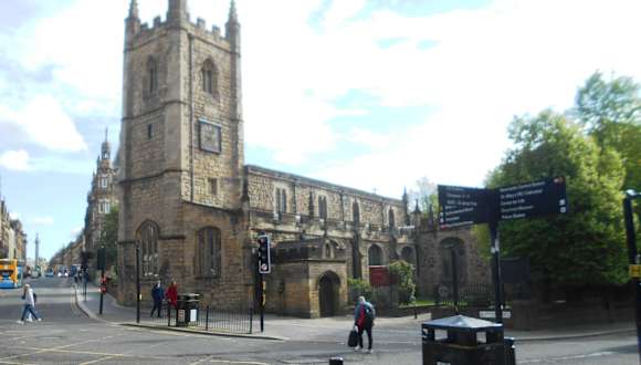 Die aus dem 13. Jahrhundert stammende Kirche, die dem Heiligen Johannes dem Täufer geweiht ist, steht auf einer kleinen grünen Insel an der Ecke Grainger Street und Westgate Road. Die ruhige Schlichtheit der Kirche kontrastiert mit einigen modernen Neubauten in der Nachbarschaft, hebt aber die schöne Steinmetzarbeit hervor. Den Turm zieren kleine Zinnen an den vier Ecken. Die Kirche hat mehrere sehr schöne Buntglasfenster.