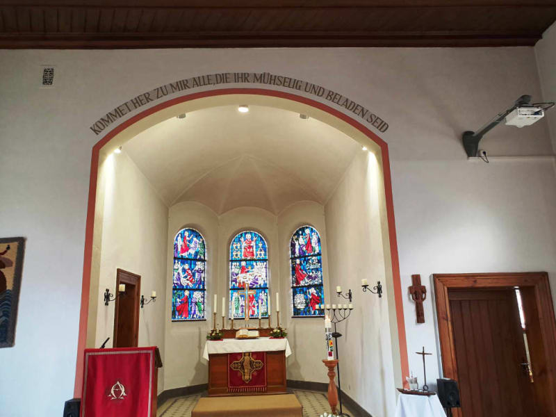 Die Evangelisch. Luther Kirche in Neuendettelsau (Kreis Ansbach) ist eigentlich und das gefällt mir besonders nicht Pompös aufgebaut worden, ehr schlicht und klein aber man fühlt sich darin besonders wohl. Im Kirchenschiff hinten, oberer Bereich ist eine kleine Orgel installiert worden, die Sitzbänke, wie ich denke, Ausreichend bestückt und im vorderen Bereich der kleine Altar. Sehr schön sind die Hinterglasmalereien der Kirchenfenster. Die Kirche wird besonders für Andachten herangezogen und jeden Sonntag findet auch der Gottesdienst statt. In Neuendettelsau sind auch weitere gewaltig große Kirchen vorhanden, aber auch diese kleine wird sehr gerne von den Gästen besucht, somit hat jede wohl ihren Stammsitz. Die Luther Kirche wird mehr von der vorhandenen Diakonie benutzt. . Adresse: Johann-Flierl-Straße 18 91564 Neuendettelsau, Deutschland