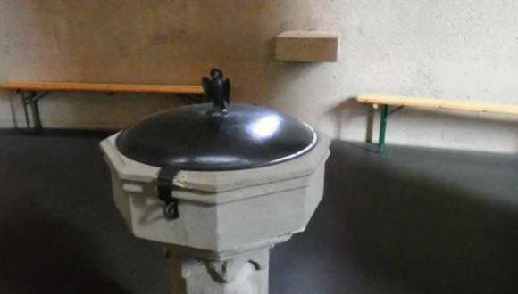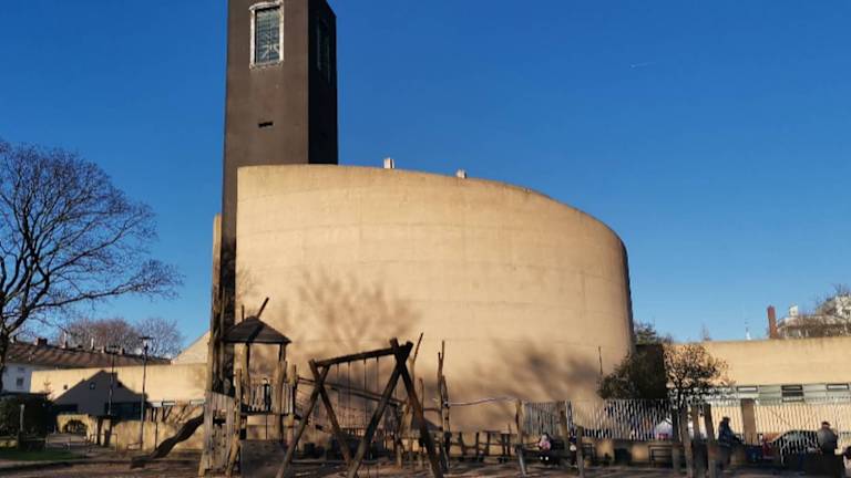 Für unseren siebten Besuch einer Kölner Kirche haben wir uns auf den Weg gemacht nach Köln-Vingst zu St. Theodor. Die Kirche St. Theodor ist die jüngste und zuletzt erbaute Kirche im Erzbistum Köln. Die erste Kirche an diesem Ort war St. Martin, die aber in den 1930iger Jahren sich als zu klein erwies für die Kirchengemeinde. So entstand ein Neubau, der St. Theodor geweiht wurde. Im Zweiten Weltkrieg zerstört, entstand eine Notkirche. Dieser Ersatzbau erlitt bei dem Erdbeben 13. April 1992 so grosse Schäden, dass sie abgerissen werden musste. Und so entstand die heutige Kirche, die der Architekt Paul Böhm entworfen hatte – diese Kirche wurde am 16. März 2002 durch Joachim Kardinal Meisner geweiht….nun, genug der Vorrede…wir wollen berichten von unseren Eindrücken: Die Kirche mit ihrem Nebengebäude bildet im Grundriss ein „Omega“ Ὠ’ – die Basis bilden die Nebengebäude – die Rundung ist die Kirche. Unsere ersten Eindrücke waren wirklich gross… ein Rundbau, in ockerfarbenem Leichtbeton errichtet, in dem es so vieles zu entdecken gibt. Der Altar leicht erhoben, auf Steinplatten, die aus der alten Kirche stammen. Rechts die Basis des ebenfalls alten Turmes, der mit einbezogen worden ist – dort ist heute die Sakramentskapelle – hier prangt die „Böhm-Rose“. Zurück im Kirchenrund fällt auf, dass die Deckenplatte mit den Betonwänden nicht abschliesst, sondern einen Spalt Platz lässt um Licht einzulassen. Daran schliesst sich eine Aussentreppe an, von der wir nur die Unterseite sehen – es ist tatsächlich eine Treppe, die der Rundung der Kirche bis aufs Dach folgt – hier befindet sich aussen der Kreuzweg. Was auch sehr auffällt, ist das schlichte, aber mächtige Holzkreuz; es ist nach vorn gebogen und „scheint die Gemeinde zu umarmen“. Links davon steht das Taufbecken, noch aus der Vorgängerkirche St. Martin. Trotz der Rundung der Kirche gibt es kleine Andachtsnischen – so die Reliquiennische , ebenfalls gestaltet von Paul Böhm. Daneben dann die Figur des Heiligen Josef. Am Schriftenstand durften wir uns kostenlose Bastelbögen nehmen, woraus man die verschiedenen Kirchenbauten zusammen kleben kann – eine tolle Idee der katholischen Pfarrgemeinde. Im Hintergrund steht eine Madonnenfigur mit dem Jesuskind auf dem Arm. Hier ist nun besonders, dass Maria in ihrer rechten Hand eine Birne hoch hält – obwohl doch die Birne gar nicht in der Bibel vorkommt. Auf der Westseite befindet sich das einzige grosse Fenster – wieder etwas ganz Besonderes! Auf der Glasscheibe sind Texte aus der Bibel (von aussen zu lesen – von innen seitenverkehrt). Wir aber hatten das grosse Glück, dass genau in dem Moment der Himmel ein paar Sonnenstrahlen durchliess – so wurde der Text im Schattenbild auf dem Fussboden und der Seitenwand der Kirche lesbar. Und dann ging es bei unserer Führung ins Untergeschoss: Können Sie sich vorstellen, dass ein 7,5-Tonner Fahrzeug hier in das Untergeschoss fahren kann, um Sachspenden zu bringen oder abzuholen?! Hier gibt es eine ganze Reihe von Sozialräumen. Zunächst sieht es nicht danach aus, denn wir stehen vor 30,40,oder gar 50 Fahrrädern mit einer vollständigen Werkstatt. Daran schliesst sich eine Schreinerei und eine Metallwerkstatt an. In einem Nebenraum ist die Weihnachtsdeko gelagert – ja, man versorgt das Viertel Hövi – den Stadtteil Höhenberg – Vingst mit eigenem Weihnachtsschmuck für die Laternen. Und dann kamen wir in die Kleiderkammer – geordnet nach Kinderabteilung und Erwachsenen. Daneben befindet sich eine Lebensmittelausgabe – mit Lager und Kühlraum, alles dabei! Unser Kirchenführer erläuterte uns dann, dass die Kirche sich mit Erdwärme versorgt – also täglich 205 l Heizöl spart! Und immer wieder fällt der Name des Pfarrers Franz Meurer. Nicht nur ein Pfarrer, sondern ein ideenreicher Sozialarbeiter Gottes! Unser Tipp: Nutzen Sie unbedingt die Möglichkeit, die Kirche im Rahmen einer Führung des Domforums mitzumachen – Sie werden erstaunt sein, was es in dieser Kirche alles zu entdecken gibt. In Eigenregie wäre uns Vieles gar nicht so aufgefallen: So z.B. die Reliquiennische an der Wand bildet den Grundriss der Kirche ab.