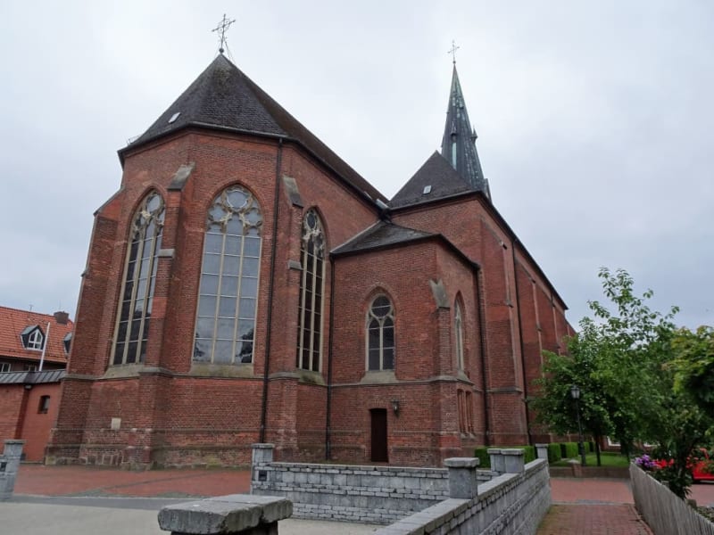 Weithin sichtbar überragt der schlanke und 65 Meter hohe Kirchturm der Pfarrkirche St. Vitus die Altstadt von Visbek. Schon mehr als 1000 Jahre standen an dieser Stelle Vorläuferkirchen, während das heutige Gotteshaus 1876 nach einer vierjährigen Bauzeit fertiggestellt wurde. Backstein im Stil der Neugotik prägt das äußere Erscheinungsbild und betritt man die Kirche, staunt man über die unerwarteten Ausmaße: Mittel- und beide Seitenschiffe sind fast 31 Meter lang und zusammen 22 Meter breit – in der St. Vituskirche finden tatsächlich 800 Menschen einen Platz. Besondere Aufmerksamkeit hat sich der Hochaltar im Chor verdient, der seit 1895 die Kirche schmückt und aus Eichenholz besteht, welches mit großer Sorgfalt bemalt und vergoldet wurde. Die Seitenaltäre sind Maria und der heiligen Anna geweiht und vor dem Chor steht ein romanisches Taufbecken aus dem 11. Jahrhundert. Stationen des Kreuzweges an den Wände der Seitenschiffe und die unzähligen Statuen an den Pfeilern – die Pfarrkirche St. Vitus ist ohne Frage ein sakrales Schmuckstück und der Rundgang hat mich nachhaltig beeindruckt. Neben Kunst und Kirchengeschichte findet man hier einen wunderbar stillen Ort zum Innehalten und Nachdenken, der sicherlich auch eine etwas längere Anfahrt lohnt.