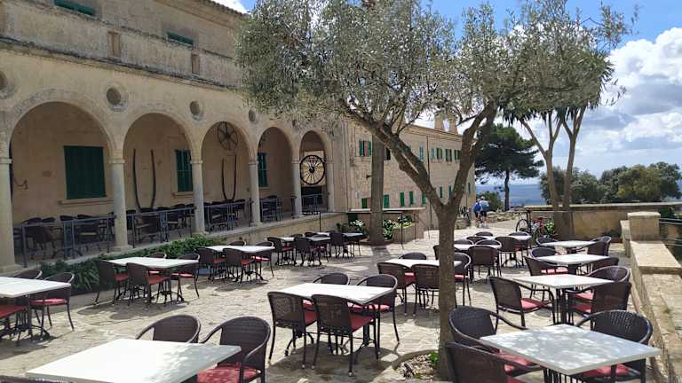 Es befinden sich drei Klöster auf dem Berg Randa. Das Santuari Mare de Déu de Gràcia (span. Santuario Nuestra Señora de Gracia) ist das unterste von den drei Klöstern, die auf dem Puig de Randa liegen. Es wird erreicht durch eine Toreinfahrt, die etwa 1,3 km nach Verlassen des Dorfes Randa, auf der rechten Seite auftaucht. Dieses ist zwar das kleinste, aber wahrscheinlich auch das schönste von allen Randa-Klöstern. Das Santuari hat seine Wurzeln in einer Wallfahrtskapelle, die im 15. Jahrhundert unter Einbeziehung einer Höhle von Franziskanermönchen unterhalb einer Steilwand errichtet wurde. Ab Mitte des 16. Jahrhunderts lebten hier zwei Franziskaner ständig und schufen die erste Einsiedelei. Heute ist von der ursprünglichen Wallfahrtskapelle nur noch die Apsis erhalten, die sich in der Ersten Kapelle auf der linken Seite befindet. Die neue, bis heute erhaltene Kirche, wurde zwischen 1622 und 1691 errichtet. Das wichtigste Stück in dieser kleinen Kirche ist eine Marienfigur von Gabriel Mòger, einem berühmten mallorquinischen Maler und Bildhauer des 15. Jahrhunderts. Die letzten größeren Umbauten an dem Komplex fanden Anfang des 20. Jahrhunderts unter Mitwirkung des berühmten katalanischen Architekten und Baumeisters Antoni Gaudí statt. Im Jahre 2005 war dieses Kloster wegen Sicherungsarbeiten nach einem Bergrutsch monatelang für Besucher gesperrt. Es wurde bei der Gelegenheit auch total renoviert und strahlt heute in neuem Glanz. Das Santuari de Sant Honorat ist das zweite der drei Klöster auf dem Monte Randa. Verlässt man das Dorf Randa auf der Straße, die auf den Berg führt, so kommt nach etwa 2,3 km an einen Weg, der im spitzen Winkel auf der rechten Seite abzweigt. Ihm folgend steht man nach wenigen Metern vor dem Kloster. Ritter Arnau Desbrull bat im Jahre 1394, nachdem er 30 Jahre als Einsiedler auf dem Berge Randa gelebt hatte, den Bischof von Mallorca um Erlaubnis, an dieser Stelle eine Kapelle zu Ehren Sant Honorats zu errichten. Aufgrund ihres schlechten Zustandes wurde die alte Kirche im Jahre 1661 durch die neue, bis heute bestehende ersetzt. Von dem ursprünglichen Gotteshaus ist nur noch eine Steintafel innen oberhalb des Eingangsportals geblieben. Die anderen Bauten sind in erst in späteren Zeiten hinzugefügt worden Außer der Kirche ist das Gelände für unangemeldete Besucher nicht geöffnet. Das noch von Mönchen bewohnte Sant Honorat bietet heute Übernachtungsmöglichkeiten insbesondere für Wander- und Seminargruppen. Das Kloster Santuari Mare de Déu de Cura (kurz: Santuari de Cura) liegt auf der Spitze des Puig de Randa in Höhe von 543 Metern. Das Franziskanerkloster ist ist das oberste und größte der drei Klöster auf dem Puig de Randa und für die Mallorquiner nach dem Santuari de Lluc der zweitwichtigste Wallfahrtsort der Insel. Seinen Ursprung hat die „Cura“, wie das Kloster kurz genannt wird, in Einsiedeleien, die gleich nach der christlichen Rückeroberung Mallorcas durch König Jaime I. von Aragón im Jahre 1229 hier entstanden. Auf dem Berg finden sich aus dieser Zeit noch in den Fels gehauenen Schlafstellen. Das Santuari Mare de Déu de Cura ist eng mit dem Namen Ramon Llull (Raimundus Lullus, 1232-1316) verbunden. Der berühmte mallorquinische Mönch Mystiker, Missionar und Philosoph zog sich 1263 als Eremit hierher zurück und lebte und arbeitete hier fast zehn Jahre. Während dieser Zeit lernte er die arabische Sprache, rief eine Arabisch- und Lateinschule zur Ausbildung von Missionaren ins Leben und verfasste zahlreiche seiner berühmten Schriften. Die Cura war einer der Orte, an dem die Katalanische Sprache von einem Dialekt zur Kultur- und Literatursprache erhoben wurde, weil Ramon Llull außer in Latein und Arabisch auch in der Volkssprache Katalan schrieb. Seit Mitte des 19. Jahrhunderts verfielen die Bauten zusehends und erst im August 1913 wurde den franziskaner Tertiaren offiziell die Benutzung dieses Wallfahrtsortes von der Diözese wieder zugesprochen. Heute gehört die Cura zu den Klöstern Mallorcas, in denen der Trakt mit den alten Mönchszellen renoviert wurde und jetzt von den verbliebenen Mönchen als Hotel betrieben wird, das nicht nur Pilger aufnimmt. Die 32 Zimmer haben modernen Standard, besitzen alle ein eigenes Bad und auch der Fernseher fehlt nicht. Im ehemaligen Grammatiksaal der Anlage ist heute ein kleines Ramon-Llull-Museum untergebracht. Hier findet man zahlreiche alte Schriften, Gebrauchsgegenstände und Bilder von Ramon Llull. Wanderer und Ausflügler finden ein ordentliches und nicht überteuertes Restaurant. Am Klosterhof gibt es unter alten, schattenspendenden Bäumen Steinbänke und -tische. Das sieht ja alles ganz nett ausm hat aber mit dem eigentliche Zweck offenbatr nur noch wenig zu tun. Das Restaurant teilt sich auf in Tapas Bar (Schenke), Terrasse (auch Kaffee und Kuchen) und das Resaurant ( in einem großen, kahlen Saal mit billiger Bestuhlung). Akzeptabel, wenn Qualität und Preis stimmen würden. Dem ist aber leider nicht so. Wir waren jetzt vier Mal in der Restauration des Kloster. Immer war zumindest das Hauptpersonal identisch. Terrasse und Schänke sind akzeptabel. Das letzte Mal wollten wir richtig Essen. Davon wollte man uns von durch harsche Rufe abhalten, da wir wohl aussahen, als ob wir "nur" Tapas wollten. Nach dem man sich vom Gegenteil überzeugt hatte, bekamen wir einen Tisch am Ende des Saales mit schönen Blick auf die Bucht von Palma. Der total verdreckte Nanchbartisch wurde während unsere gesamten Aufenthaltes ebenso wenig abgeräumt, wie ein anderer Tisch weiter vorne. Wir waren die einzigen Gäste. Wir bestellten 1 Entrecóte (15,50 €), 1 Kartoffelsalat (8,50 €). Dazu bekamen wir Brot, Oliven und Aioli (5,50 €) unaufgefordert dazugestellt. Das Entrecóte war nur teilweise genießbar, der Teller lieblos und klein wie die Tapas-Teller, der Kartoffelsalat bestand aus 1 Ei, viel grünem Salat mit geschnitzelter Tomat (1) und drei Eßlöffeln Kartoffelsalt. W