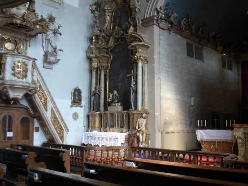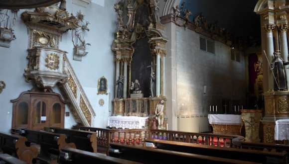 Nach dem Mittagsessen im Klosterbräustüberl besichtigten wir das Kloster Reutberg. Auf der Speisekarte vom Klosterbräustüberl wurde über die Geschichte vom Kloster Reutberg ausführlich berichtet. . Das Kloster wurde laut einer Broschüre der Klosterkirche im Jahr 1618 durch Johann Jakob und Anna von Papafava zunächst als Kapuzinerinnenkloster gegründet. Die Hofmarksherrin Anna von Pienzenau und ihr Ehemann Graf Jacob Papafaba kehrten von einer Wallfahrt nach Loreto in Italien mit einer Kopie des dortigen Gnadenbildes zurück und ließen auf dem Hügel ihrer Grafschaft eine Kapelle nach den Maßen des " Hl. Hauses von Nazareth" errichten - die erste Loretokapelle in Bayern. Nach dem Petersdom in Rom ist Loreto der zweitwichtigste Wallfahrtsort in Italien und einer der wichtigsten der katholischen Welt Als Graf Papafaba, nach einem Mordanschlag auf seine Ehefrau, mit kostbarem Besitz nach Italien floh, gelobte die unglückliche Gräfin, im Falle einer glücklichen Wendung zur Kapelle ein Kloster bauen zu lassen. Sie erhielt das geraubte Gut zurück, das Kloster wurde errichtet, Im Jahre 1651 wechselten die Ordensmitglieder zu den Franziskanern. Reutberg wurde ein bekannter und beliebter Wallfahrtsort. Der Kurfürstl. Hofkammerrat Christian von Raßfeldt stellte für einen Neubau des mittlerweile beengten und baufällig gewordenen Klosters sein Vermögen zur Verfügung. 1731 wurde der Klosterbau in seiner heutigen Form fertiggestellt und 1735 die erweiterte, barocke Wallfahrtskirche eingeweiht. Im Zuge der Säkularisation wurde das Kloster 1803 aufgelöst. Das Klostergebäude und die Kirche blieben aber erhalten. König Ludwig I.erlaubte 1835 den Fortbestand des Klosters. Interessant fand ich den Hochaltar und die zwei Seitenaltäre. Laut der Kirchenbroschüre wurde der Hochaltar mehrmals verändert. Die Reutberger Loreto-Madonna war früher nach barocker Art mit einem Stoffgewand bekleidet. Jetzt steht diese aus Olivenholz geschnitzte Figur mit Mantel und Schleier auf einem Aufbau über den Altar. Je nach der Zeit des Kirchenjahres werden Kleid und Vorhänge der Altarbühne gewechselt. Zwei große Engel umgeben das Gnadenbild. Die zwei Seitenaltäre wurden von Christian von Raßfeldt gestiftet. Der rechte Seitenaltar ist dem Heiligen Kreuz und der linke Seitenaltar der Heiligen Anna geweiht. Wenn man die Klosterkirche betritt, fällt einen auf der gegenüberliegenden Wand das Grab der Schwester M.Fidelis Weiss. Im Jahr 1902 trat die 1882 in Kempten geborene Eleonore Weiss ins Kloster Reutberg ein. 20 Jahre verbrachte sie dort als Ordensfrau, aber erst nach ihrem Tod im Jahr 1923 erfuhr man von ihren mystischen Begnadigungen. Viele Jahre durchlitt sie in Visionen wöchentlich am Donnerstag und am Freitag die Leiden Jesu und am Samstag die Schmerzen Mariens. Der Seligsprechungsprozess wurde 1936 eingeleitet, dessen erster Teil 1977 abgeschlossen wurde. !982 wurde der Apostolische Prozess eröffnet und am 1.Juni 2007 wurde ihr von Papst Benedikt XVI. der heroische Tugendgrad anerkannt. Alljährlich kommen viele Menschen an das Grab der Schwester M.Fidelis Weiss, um ihre Probleme vorzubringen. Zurzeit leben angeblich nur noch zwei Franziskanerinnen im Kloster. Eine sehr interessante und sehenswerte Wallfahrtskirche.