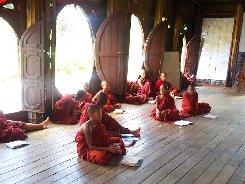 Am westlichen Rand des Örtchens Nyaung-Shwe liegt das Shwe-yan-pyay-Kloster. Es besteht vollständig aus Teakholz und ist mit schönen ovalen Fenster ausgestattet. Man darf das Kloster betreten und kann zuschauen, wie Novizen dort ihre Lektionen auswendig lernen. Nebenan befindet sich ein Steingebäude, dessen Wände voller Nischen (ca. 1.700 St.) sind, in denen kleine Buddhas sitzen. Wir sind von unserem Guesthouse (Four Sisters Inn) aus mit dem Fahrrad hingeradelt (ca. 20 Minuten Fahrt mit dem Fahrrad).