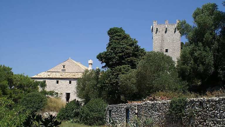 Das Benediktinerkloster auf der Insel der Jungfrau Maria ist eines der interessantesten Orte in dieser Umgebung. Auf der Insel, die an einem großen See auf der Hauptinsel Mljet liegt, befindet sich eines der berühmtesten Benediktinerklöster des 12. Jahrhunderts. Die Ankunft der Benediktiner an diese Stelle ist mit dem Konflikt in dem Kloster im italienischen Lokrum verbunden. Nach Ankunft auf der Insel bauten die Einwohner ein Kloster und eine Kirche. Das romanische Kloster wurde mehrmals umgebaut. Die Benediktiner leisteten einen großen Beitrag zur Entwicklung der gesamten Insel. Eine Zeit lang waren sie die Inhaber der Mehrheit der Gebiete dieser Insel. Sie bauten das Land an, indem sie die damaligen Fähigkeiten an die örtlichen Bedingungen anpassten, demzufolge entwickelte sich die Landwirtschaft auf dem fruchtbaren Land. Die Benediktiner trugen zur Entwicklung der Kultur bei. Es wird angenommen, dass die zu dem Benediktinerkloster gehörende Bibliothek zu einer der zehn größten in ganz Dalmatien gehört hat. Die Macht der Benediktiner wird auch von der Tatsache bestätigt, dass viele benachbarte Klöster ihnen gehörten. Heute besitzt das Renaissance-Gebäude zwei Etagen, den Innenhof, den Hauptflügel und den Hof. Im Jahr 1869 wurde das Kloster verlassen und dieses Ereignis wird mit einer Legende verbunden. Diese besagt, dass beim Verlassen des Klosters die benediktinischen Bewohner die Insel verfluchten, damit sich alles wendet. Der Umzug der Benediktiner fand gegen den Uhrzeigersinn und mit den nach unten umgekehrten Kerzen statt. Nachdem das Kloster von Mönchen verlassen wurde, hielten sich hier viele bedeutende Wissenschaftler und Künstler auf. Die direkt neben dem Kloster sich befindende St. Marienkirche wurde im romanischen Stil nach dem Vorbild der Kirche auf Monte Gargano in Italien erbaut. Im 16. Jahrhundert wurde sie umgebaut.