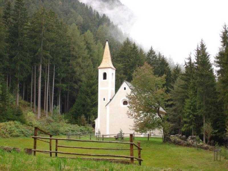 1726 wurde bereits eine kleinere Kapelle für die Knappen des Pfunderer Bergwerks geweiht. Diese war aber sofort zu klein, sodass schon 1736 der heutige frühbarocke Bau mit abgesetztem Chor und kleinem Turm errichtet wurde. 1934 wurde das weit ab gelegene Kirchlein ausgebaut, welches 1964 geplündert und verwüstet wurde. Diese Kirche war über 150 Jahre lang das religiöse Zentrum der Knappen. Bis zum 1. Weltkrieg wurde hier wöchentlich ein Gottesdienst gefeiert. Das kulturhistorisch wertvolle Altarbild ist eine Kopie. Das Original hängt in der Pfarrkirche. Es zeigt die Bergknappen bei der Arbeit und ringsherum befinden sich die Heiligen der Knappen. Die Kirche ist heute abgeschlossen und nicht mehr frei zugänglich.