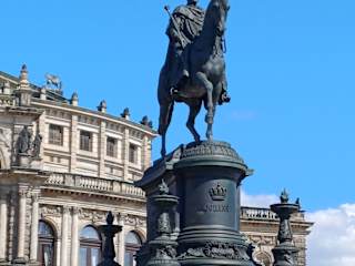 Auf dem Theaterplatz steht vor der Semperoper ein auffälliges, großes Denkmal - es ist dies das Reiterdenkmal für König Johann von Sachsen. Das Denkmal für den Sachsenkönig Johann ist das wohl meistfotografierte Denkmal Dresdens. Besonders beliebt ist das Motiv in einer Kompination, welche aus König-Johann-Denkmal und der Semperoper im Hintergrund besteht (und es ist auch eines meiner Lieblingsmotive in Dresden).