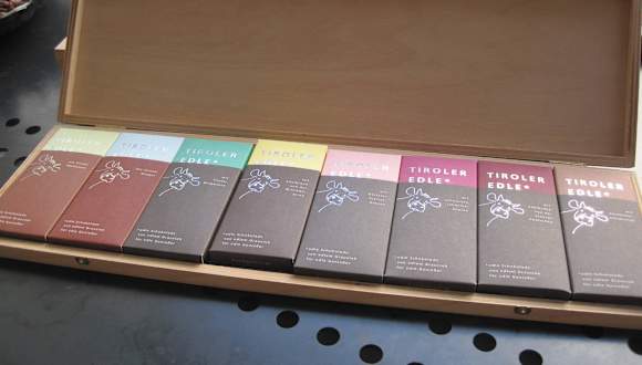 Eine Entdeckung: die Konditorei Haag mit gegenüberliegendem Flagship-Store der Tiroler Edlen, einer wunderbaren handgemachten, exklusiven Schokolade!!! Die Milch dafür kommt vom Tiroler Grauvieh, einer speziellen alten Rinderrasse, wie uns erklärt wurde. Die Konditorei ist sehr nett eingerichtet und im Schoko-Laden fühlt man sich als Schokotiger im Paradies!