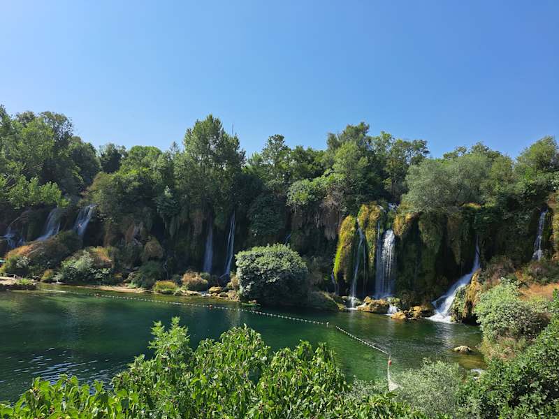 Ich war schon öfters bei den Kravica-Wasserfällen und es hat mir immer sehr gut gefallen.Ich fuhr immer während der Medjugorje-Aufenthalte hin, weil man eine gute abkühlung bekommen kann. In den letzten Jahren wurde alles modernisiert, der Parkplatz wurde ausgebaut, die Aussichtsplattform wurde vergrößert und die Wege wurden betoniert und gepflastert. Heute gibt es Platz für mehrere Busse und viele PKWs, viele sind im Schatten von Bäumen. Es gibt dann eine Getränkebar mit vielen Sitzplätzen im Schatten, man kann auch von der großen Plattform aus die Wasserfälle bewundern und fotografieren. Danach kann man entweder die Straße hinuntergehen oder den neu errichteten Weg nehmen. Dabei gibt es immer wieder kleine Plattformen, wo man rasten und den Ausblick genießen kann, was auch nötig ist. Unten gibt es dann mehrere kleine Tavernen, hier schmeckt alles gut und ist nicht zu teuer. Es gibt genügend Liegeplätze im Schatten, durch die Wassertempersatur von 20-25°C wird es dort auch nicht zu heiß. Man kann klettern und von den großen Felsen hinunterspringen. Dabei haben sich aber schon Personen verletzt. Ich kann aus eigener Erfahrung bestätigen, dass man beim Springen einen richtigen Adrenalinkick bekommt, aber ich habe auch schon miterlebt, dass ein Freund von mir ausgerutscht ist und fast auf einem Felsen gelandet wäre. Man kann sich natürlich auch in ein kleines Wasserbecken legen und sich entspannen, das ist nicht gefährlich. Ich kann die Kravica Wasserfälle nur empfehlen. Man kann auch als Familie oder Reisegruppe einen ganzen Tag dort verbringen, man mus jedoch auf die Kinder sehr gut aufpassen.