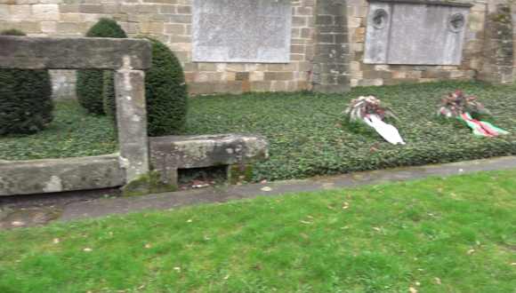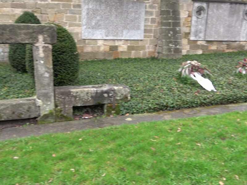 An der Friedhofsmauer, vor dem Friedhof, direkt bei der Kirche Sankt Bernhardt ist ein Kriegerdenkmal. Es ist ein kleiner Steinaltar, daneben zwei Kränze. An der Wand ist eine Gedenktafel für die Opfer des ersten Weltkrieges. Links und rechts sind Steinbilder von Soldaten. Daneben eine Steintafel mit den Namen der Gefallenen des zweiten Weltkrieges. Adresse: Am Schönen Rain 72, 73732 Esslingen am Neckar Geodaten: P8X8+CRF Esslingen am Neckar