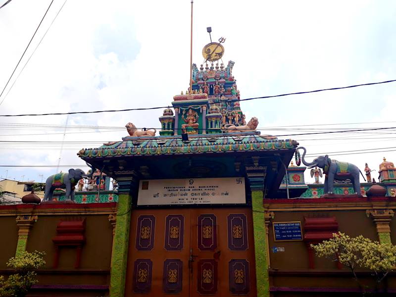 Der größte hinduistische Tempel in Medan, Kuil Shri Mariamman, ist reich verziert und liegt direkt neben dem Gate of India am Eingang zu Little India. Er wurde 1884 zur Verehrung der Göttin Mariamman erbaut. Man kann den Tempel kostenlos besuchen, muss aber die Schuhe ausziehen und um eine Spende wird mit Boxen gebeten. Die Öffnungszeiten sind am Vormittag bis 12 Uhr und dann erst wieder ab 17 Uhr. Einmal im Tempel eingetreten befindet man sich in einer Ruheoase und bekommt von dem Trubel und dem Verkehr rundherum kaum etwas mit.