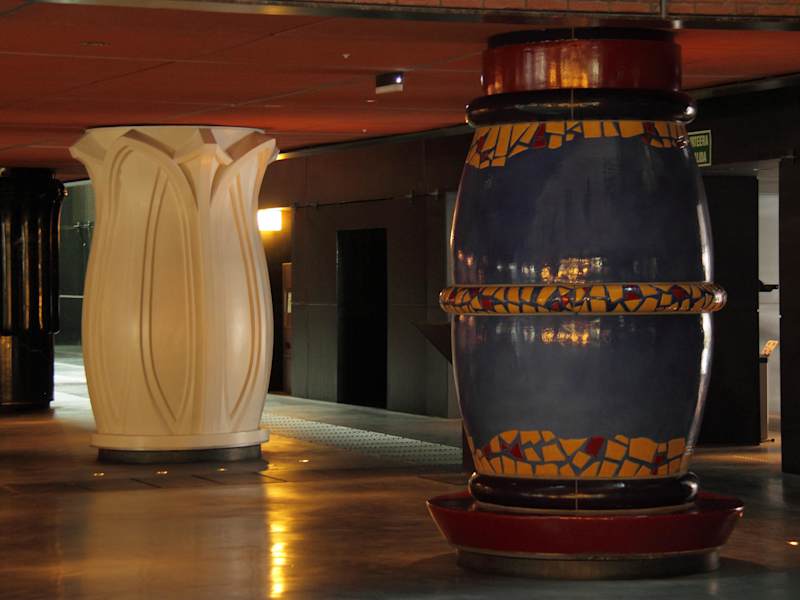 Das Alhóndiga ist ein Kultur- und Freizeitzentrum, das 2010 eröffnet wurde. Das historische Gebäude war ursprünglich ein Weinlager. Das Innere wurde vollständig entkernt und neu designt. Philippe Starck schuf das Atrium der Kulturen mit 43 prächtigen Säulen. Diese sind absolut sehenswert und frei zugänglich. Es kostet keinen Eintritt.