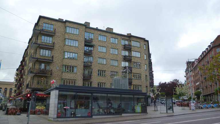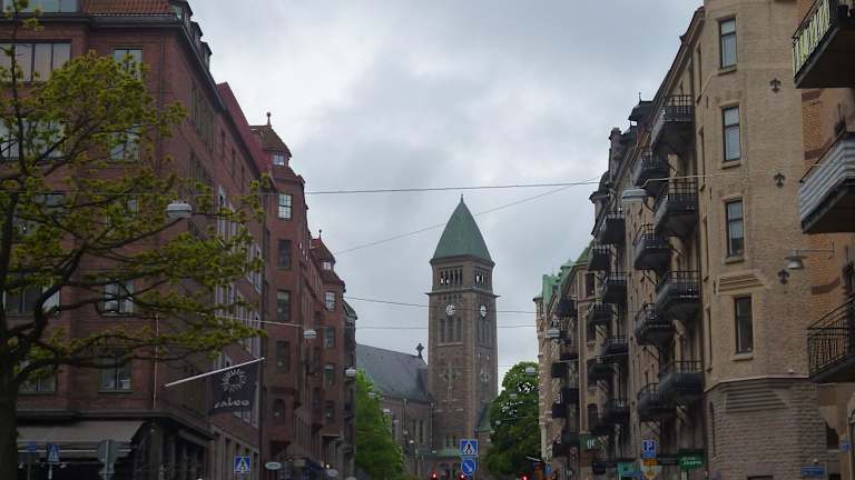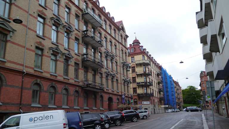 Im Gegensatz zu den Holzhäusern des ehemaligen Arbeiterviertels Haga sieht man hier die großbürgerlichen Häuserzeilen, die das Stadtbild prägen.