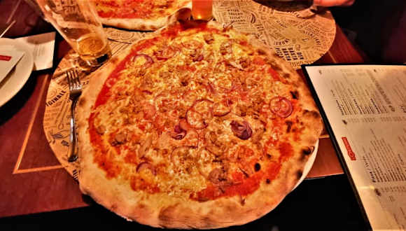 Zuerst wunderte uns, dass der Tisch nochmals gereinigte wurde als wir eintrafen. Dann ernteten wir Verwunderung, als wir zwei Pizzen bestellten. Die Pizza war dünn belegt und wagenradgroß (und stand ca. 5 cm über den Teller allseitig über). Erstklassiger Geschmack, genauso, wie wir sie mögen. Preis-/Leistungsverhältnis auch bei den Getränken sehr gut. Einrichtung o. k. Wir fanden es klasse. Nudeln haben wir nicht getestet. Besser zu zweit eine Pizza oder Nudeln geniessen und ein leckerer Nachtisch dazu. Adresse: Innerer Laufer Platz 2, 90403 Nürnberg, Tel.: 0911/555894.