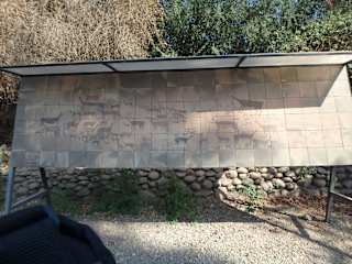 Die Scharrbilder von Tropilla sind -abgesehen von den Motiven- vergleichbar mit denen in Nazca. Hier befinden sie sich jedoch an einem Hang des Cerro Sombrero, in Nazca auf flachem Gelände. Gott sei Dank, kann man sie nur von weitem bewundern und nicht aus der Nähe, sonst wären sie längst verschwunden. Erstaunlich ist der gute Erhaltungszustand der Geoglyphen, die Lamas, menschliche Figuren oder geometrische Formen darstellen. Das Wissen über deren Bedeutung ist jedoch verloren gegangen. Es lohnt aber sicherlich anzusehen, wie exakt unsere Vorfahren die Geoglyphen ohne technische Hilfsmittel gestalteten.
