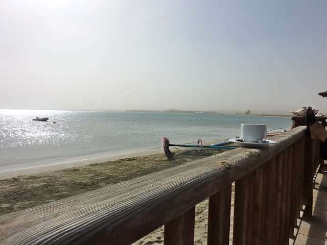 Das kleine feine Surf Center des Lahami Bay Hotels bietet für Hotel Gäste, die erstmals einen Windsurf-Versuch starten möchten, eine kostenlose Schnupperstunde an. Wir waren nun zum 6. Mal in diesem erstklassigen Hotel, haben das Surf-Center-Team mit Gitta und Peter schon im Dez. 06 kennengelernt. Zigmal habe ich ihre präzisen Anweisungen an Surf-Schüler übers Wasser schallen gehört, wenn wir bei unseren langen Spaziergängen an der Sail Away Bar vorbei kamen - nie habe ich einen Versuch gewagt. Sehnsüchtige Blicke verfolgten die athletischen Könner ... Das ist nichts für eine pummelige Seniorin, die zusätzlich noch unter Platzangst in engen Neoprenanzügen leidet, dachte ich ... Wir kamen ins Gespräch und Gitta machte mir Mut: bot günstigen lauen Wind, großes Board und kleines Segel an, rutschfeste Neoprenschuhe und einen bequemen Shorty, den ich so nach und nach immer ein bißchen höher reißverschließen sollte ... Endlich - wenig Wind, ruhiges Wasser - die geübten Windsurfer vertrieben die Zeit mit Schnorcheln oder Tauchen, denn diese Kombination bietet sich im Lahami Bay Hotel geradezu an, oder faulenzten auf gut gepolsterten Sonnenliegen im Windschatten der Surfstation. Ziemlich weit draußen eine Surferin (Kristin), doch der kam ich sicher nicht in die Quere. Nachdem ich halb im Anzug steckte begann Peter mit "Trockenübungen", damit ich ein Gefühl fürs Segel bekam ... dann weiter aufs Board, Balanceübungen ... dann alles zusammen mit Segel ... und immer wieder Richtungswechsel üben. Peters Anweisungen konnte ich gut verstehen und versuchte auch tapfer sie auszuführen. Anfangs zitterten mir die Beine, ich war total verkrampft und wußte manchmal nicht gleich wohin wenn es hieß: rechte Hand ... linke Schulter oder rechte Schulter, doch Peter schaffte es sehr geduldig mir die Angst zu nehmen ... und ich erlebte erstmals dieses tolle Gefühl sanft über Wasser zu gleiten - manchmal ruckte eine Böe am Segel, wenn mich dies unverhofft traf, stürzte ich sofort ins Wasser ... Peter achtete gekonnt auf jede meiner Hand- und Fußbewegungen, korrigierte durch Zurufe und es klappte immer besser. Am Ende der Schnupperstunde surfte ich schon mutiger mit fast geschlossenem Anzug vor dem Center hin und her ... Damit ichs nicht vergesse: Sicherheitsvorkehrungen waren auch getroffen, das Schlauchboot einsatzbereit, wenn ich nicht weiter kann, oder abgetrieben werde, Segel ins Wasser und einfach aufs Board legen, dann werde ich heimgeholt ... Der Wind frischte auf und ich machte den Könnern Platz. Duschen und Umziehen kann man sich im Center in praktischen sauberen Duschräumen - Shorty auswaschen und auf einen Bügel hängen - fertig. Das Schnuppersurfen war für mich ein eindrucksvolles Erlebnis, das Interesse an einem Anfängerkurs wurde geweckt, mein Mann beglückwünschte mich - er hat die tollen Fotos gemacht. Ich möchte mit meinem Tipp anderen Mut machen und kann das nette Team vom Surf-Center Lahami Bay wärmstens empfehlen ... Also - nur Mut - bei günstigem Wind - alles kann organisiert werden, auch wenn man zu Hause vorm Urlaub noch keinen Gedanken daran gehängt hat ... Viel Spass!