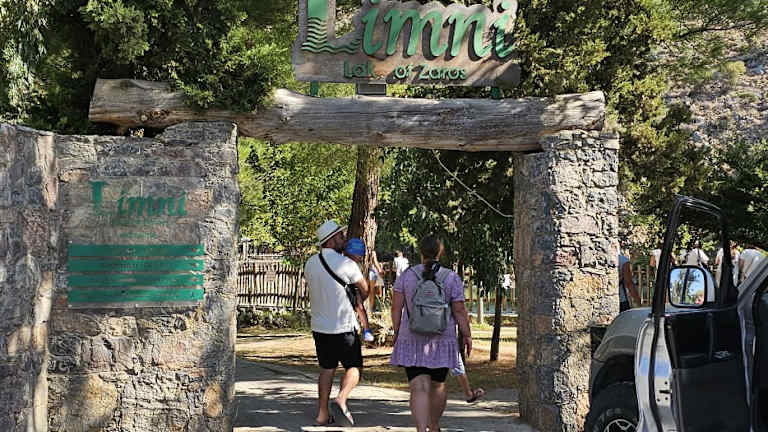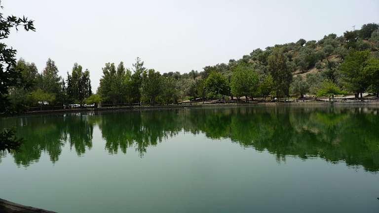 Nördlich von Zaros befindet sich der von einer Quelle gespeiste kleine See in grüner schattiger Umgebung. Fast am Ortsende zweigt rechts eine schmale Str. ab, ein braunes Schild weißt den Weg. Im See tummeln sich viele Fische auf/am See halten sich verschiedene Wasservögel auf. Den See selbst kann man umrunden, sich auf Bänken und dem Picknickplatz niederlassen. Die Taverne dort hatte geschlossen und es machte den Eindruck, als ob es schon länger so sei. Also Getränke und Essen mitnehmen oder in einer an der Zufahrtsstr. liegenden Tavernen einkehren.