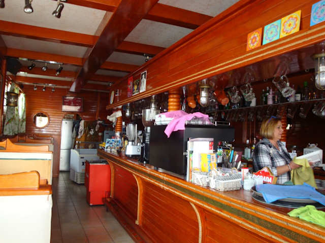 Auf der Avenida Maritima 23 oder besser gesagt, auf der Strandpromenade von Puerto Naos ist diese Bar. Sehr schön ausgestattet, vor allen Dingen mit einer Aussenbewirtschaftung lockt diese Bar Kunden an. Wir waren einmal dort und bestellten Cocktails, die Bedienung war sehr freundlich, aber sie war wie wir sehen konnten, nicht immer im Dienst. Die Cocktails wurden nicht in einem Cocktailglas serviert sondern in einem bauchigen Weinglas. Das Glas war zur Hälfte mit Icecubes gefüllt, wir baten um Löffel und haben das meiste Eis heraus geholt, dann sah die Sache nicht mehr so toll aus. Der Reiz eines Cocktails war dahin. Da wir fast jeden Abend an dieser Bar vorbei kamen, spielte immer jemand Klavier und mal eine Dame, mal ein Herr sang dazu. Uns sagten die Lieder und der Gesang aber nicht zu, wir wollten nicht mehr Gast sein.