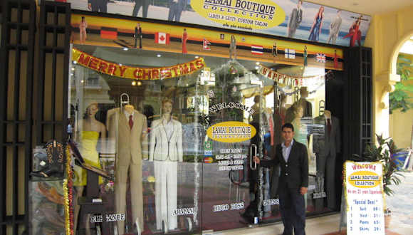 Dieser Schneider, eine nepalesische Familie, hat ihr Ladengeschäft in der gehobenen und architektonisch ansprechenden Einkaufsplazza des 4 Sterne Buddy Boutique Hotels am nördlichen Ortseingang von Lamai. Wir haben uns davon überzeugt das - wie bei wenigen Schneidern auf Samui - hier noch qualitativ sehr gute Handarbeit geleistet wird ( keine Factoryherstellung ! ) Nach 3 bis 4 Anproben in zwei bis drei Tagen passten Anzüge aus italienischen Super 150 und Cashmire, Kleider aus feinster Seide perfekt. Preise zwischen 70 und 140 Euro oder 12 Euro für ein Anzughemd mögen zwar nicht die billigsten auf Samui sein, aber dies wollten wir auch nicht sondern topp Qualität wie wir sie aus Mailand kennen ( nur viel preiswerter ) und die haben wir ohne aufdringliches "Schönreden" von Mr. Win erhalten. Absolut empfehlenswert - aber überzeugen Sie sich selbst.