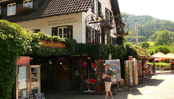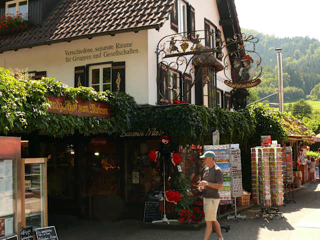 Der Gasthof liegt mit seinem schönen Gastgarten leider zur belebten Straße hinaus. Aber die vorbeiplätschernde Gutach übertönt den Lärm etwas. Das gut-bürgerliche Essen hat uns gut geschmeckt, auch Auswahl und Service sind gut. Anders als man es von dem prominenten Standort beim Museum erwarten könnte, sind die Preise moderat