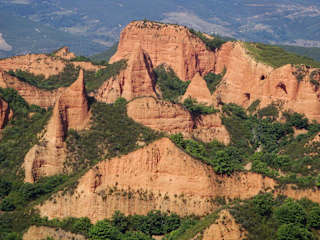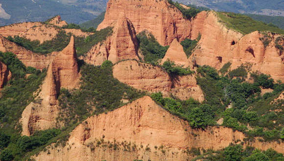 Der Kulturpark "Las Médulas" befindet sich bei dem gleichnamigen Dorf, etwa 25 Kilometer südwestlich von Ponferrada, der Hauptstadt der Region El Bierzo, im äußersten Westen der Provinz León. Dabei handelt es sich um ein Landschaftsbild, dass sich aus einem im 3. Jahrhundert n.Chr. aufgegebenen Goldminenbetrieb, dem wichtigsten des Römischen Reichs, gebildet hat. Die Römer setzten beim Goldabbau viel Wasser ein und füllten es in ein Netzwerk von Galerien, die sie vorher im oberen Teil der Berge geschaffen hatten. Das Wasser erzeugte Risse im Inneren der lehmigen Berge und ließ sie schließlich zusammenbrechen. Im Laufe der Jahre entstand eine einzigartige Landschaft mit Bergen aus rötlichem Sand, Lagunen und Seen sowie jahrhundertealten Kastanien- und Steineichenbäumen. Im Inneren können verschiedene Routen zu Fuß, mit dem Fahrrad oder zu Pferd verfolgt werden. Nähere Informationen bekommt man im Besucherzentrum. Der Komplex wurde 1996 zum Kulturgut erklärt und 1997 von der UNESCO in die Liste des Weltkulturerbes aufgenommen. Homepage: https://patrimonionatural.org/espacios-naturales/monumento-natural/monumento-natural-las-medulas